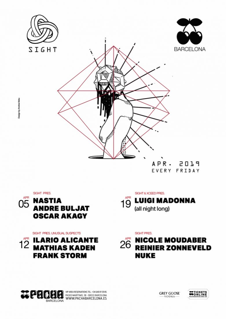 Abril empieza fuerte en SIGHT. La sesión más underground de Pacha Barcelona prepara un mes top desde todos los puntos de vista, con los nombres más importantes de la escena techno, propuestas únicas y amigos de la casa, que seguro harán disfrutar, más que nunca, a los SIGHTERS que nos acompañan cada viernes. La acción comienza este mismo fin de semana, con una de las artistas más queridas y demandadas del techno en la actualidad…