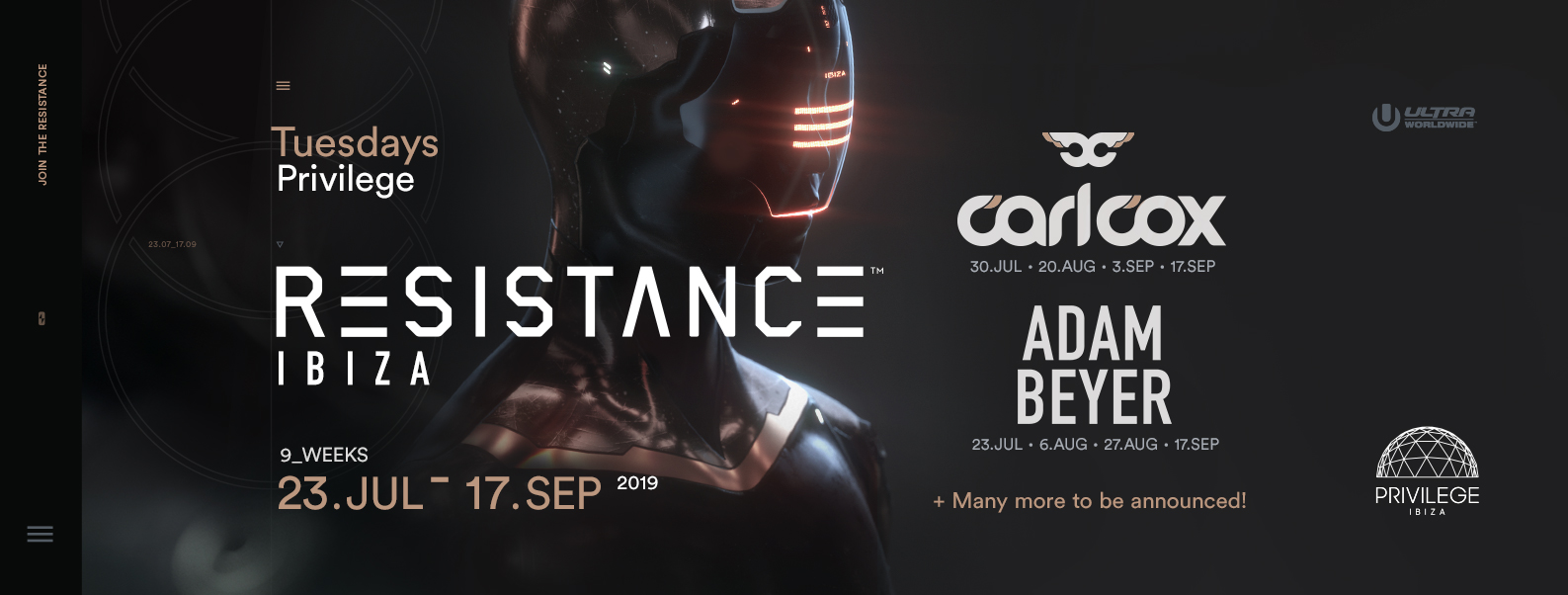 Resistance Ibiza anunció que volverá a aterrizar en la Isla de Ibiza en 2019. Regresando a su hogar en los dos años anteriores, en la discoteca más grande del mundo, Privilege