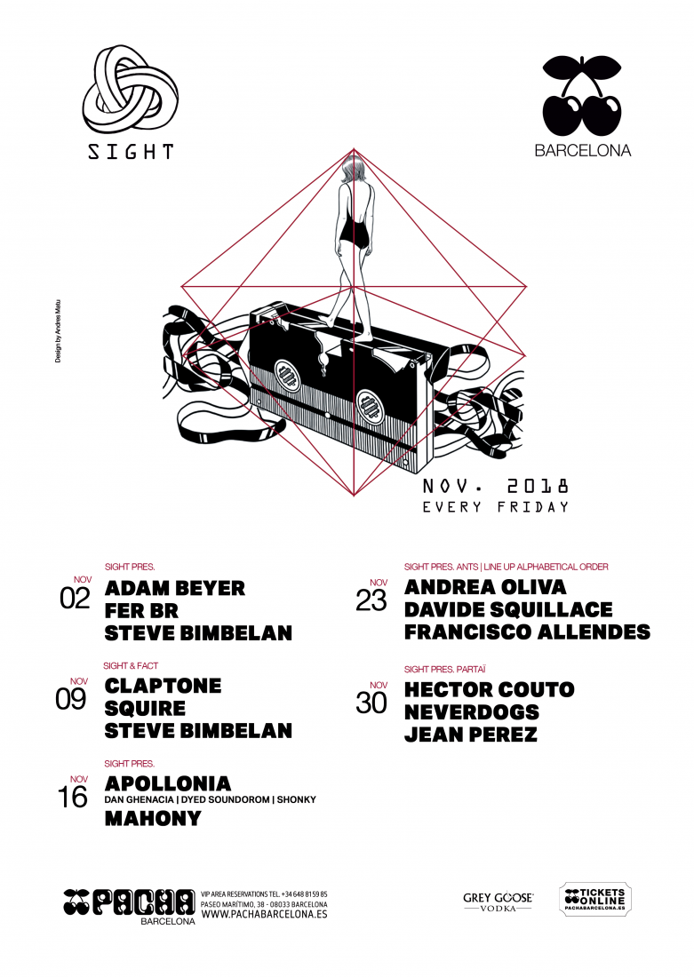A punto de finalizar el año, SIGHT ha presentado su programación para este penúltimo mes en el que, una vez más, vuelve a echar el resto en cuanto a nivel artístico se refiere. Cinco noches de auténtica locura en la que solo los mejores selectores han sido invitados, para deleitar al público de la sesión de techno de Pacha Barcelona con su particular selección de ritmos 4/4 sin contemplaciones…