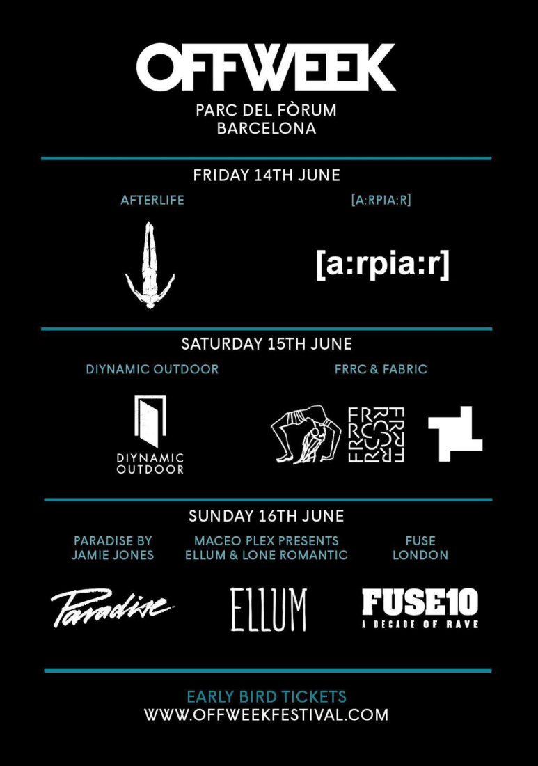 AfterlifeDiynamicParadiseEllum & Lone RomanticFRRCFabric London[a:rpia:r] y Fuse London aterrizarán en Barcelona para celebrar esta clásica semana de la música electrónica en junio.