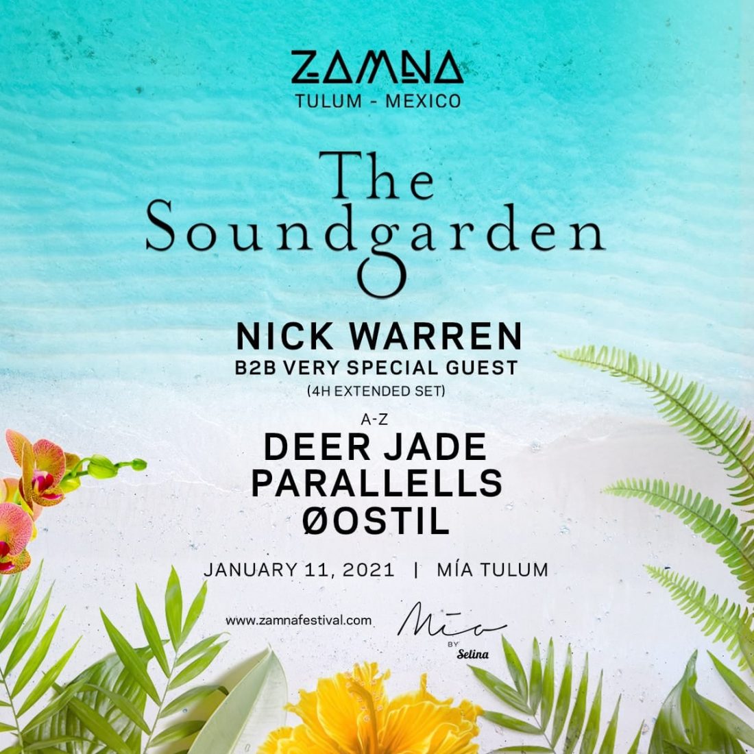 The Soundgarden con Nick Warren es otra de las fiestas confirmadas, en este caso para el día 11 de enero con el propio Nick Warren en un set especial de 4 horas b2b con un invitado sorpresa, y Deer Jade, Parallelles y Øostil
