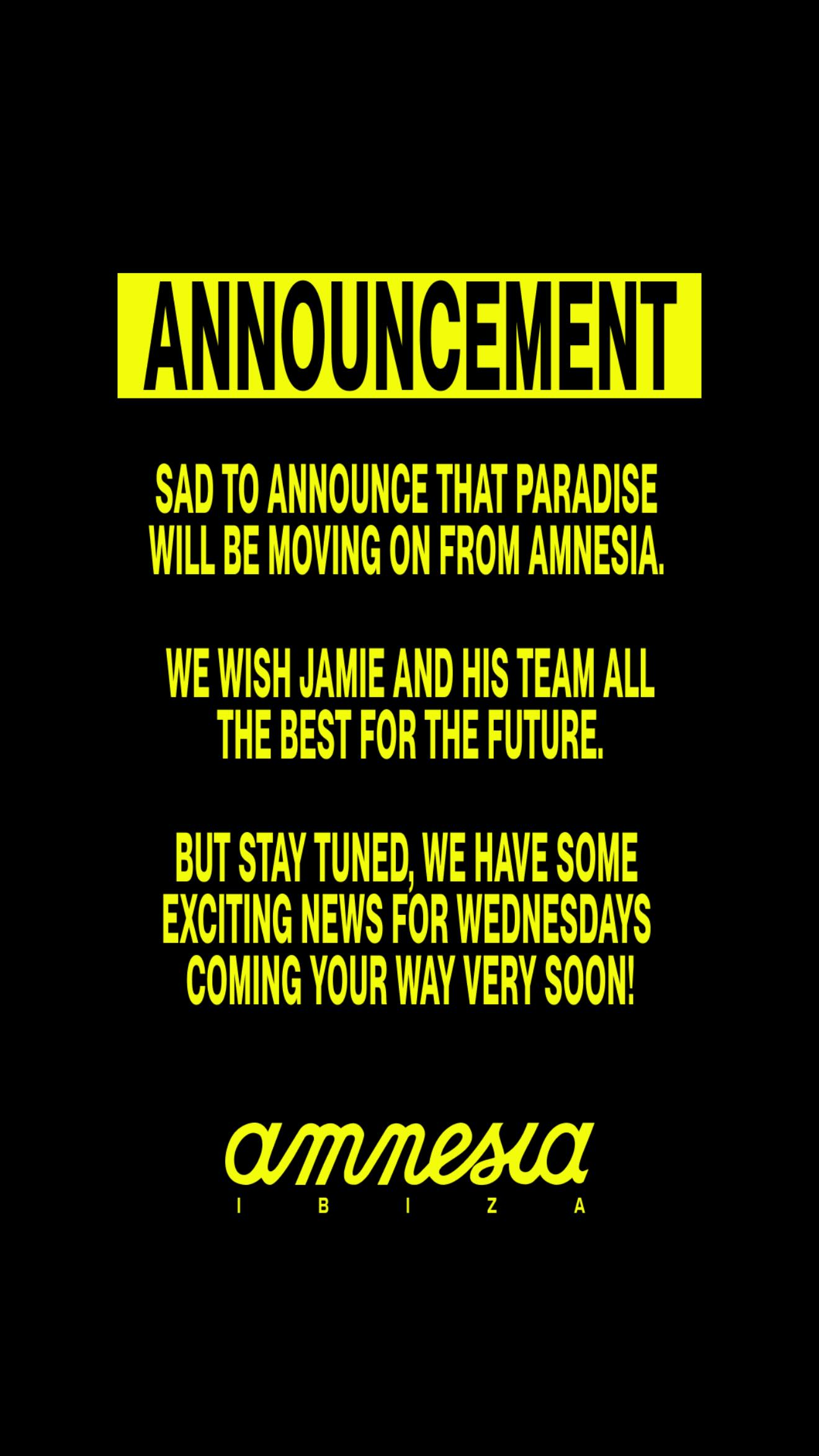 AMNESIA ANUNCIA QUE LA FIESTA PARADISE Y JAMIE JONES NO CONTINUARÁN ESTE 2025.