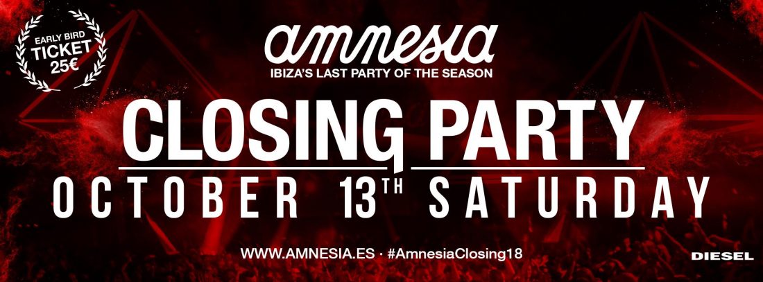 El sábado 13 de octubre, es el día elegido por Amnesia Ibiza, para realizar su fiesta de closing de temporada 2018.