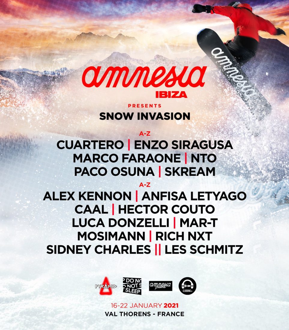 Amnesia Ibiza Presents Snow Invasion es el nombre del evento en el que están inmersos promotoras fijas del club como Pyramid, Do Not Sleep o Clubbing TV.