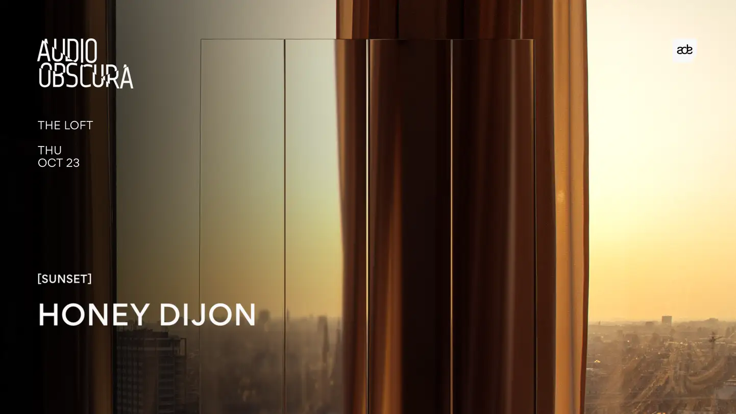 El jueves 23 de octubre, Audio Obscura toma The Loft durante el Amsterdam Dance Event 2025 con una actuación exclusiva de Honey Dijon al atardecer, inaugurando tres días de música en las alturas con el inconfundible sello de elegancia y energía de la artista estadounidense.