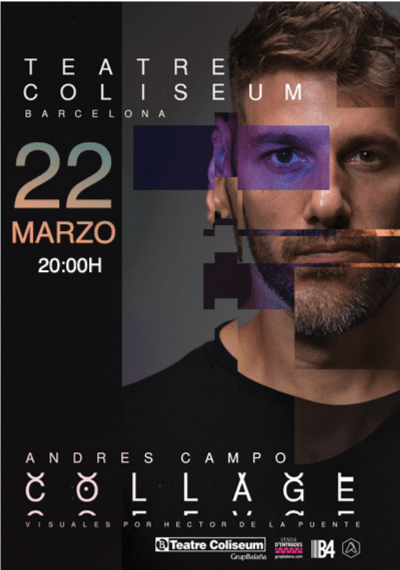 Andres Campo presenta un show audiovisual inmersivo diseñado especialmente para teatros y auditorios. Creando un collage musical en directo, este acto es la expresión musical más íntima de Andres. Logrando un equilibrio perfecto, Collage es la unión de texturas espaciales y enigmáticas, de sonidos orgánicos y sintéticos, de melodía, de profundidad y serenidad. Es unaconfiguración distinta en la que Andrés deja volar su creatividad y, ayudándose de tecnología, sintetizadores, cajas de ritmo y grabaciones sonoras, fusiona magistralmente dos mundos paralelos: el de la fuerza y el ritmo con el de la musicalidad y la armonía.