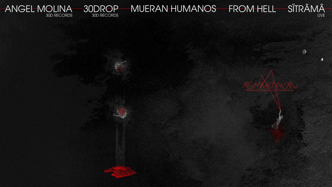 Mueran Humanos contarán con Sïtrâmâ como teloneros. La transición a la noche de club irá de la mano de Ruth García aka From Hell. Ya en la noche el turno es del sello barcelonés 30drop / 30D Records, con el directo del alma mater del sello: 30drop y la institución local Angel Molina. Todo ello aderezado con nuestro soundsystem y visuales de competición.