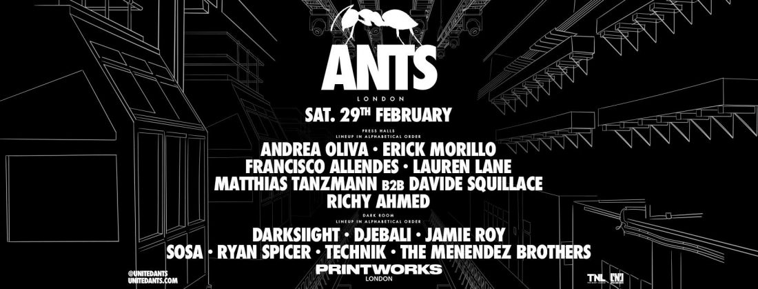 Lauren Lane, Matthias Tanzmann y Davide Squillace en formato B2B, Richy Ahmed y el propio Francisco Allendes. Ants también estará en las próximas semanas en la Miami Music Week y eventos en nuestro país en Fabrik – Madrid y Pacha Barcelona.