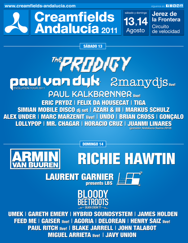 El festival estaba herido de muerte y en su agonía, los organizadores decidieron trasladar el festival hasta el asfalto del circuito de Jerez, y aunque en la primera edición en suelo gaditano, funciono medio bien gracias al fichaje de artistas como; The Prodigy, Paul Van Dyk, 2manydjs, Paul Kalkbrenner, Eric Prydz, Felix Da Housecat, Armin Van Buuren, Richie Hawtin, Laurent Garnier, Bloody Beetroots o Umek, y la principal novedad, el festival pasaba a realizarse durante dos jornadas, exactamente los días 13 y 14 de agosto de aquel año 2011, Creamfields no era lo mismo.