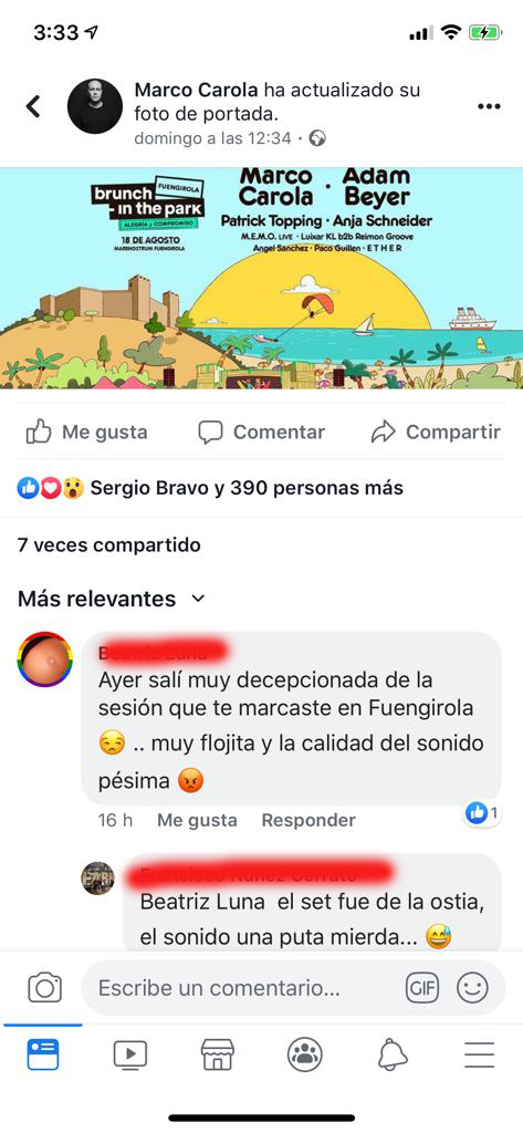 Públicos como el de la Málaga, una ciudad que en los últimos años ha crecido su escena electrónica y cuenta con clubbers que saben lo que es calidad y lo que no, o como decía el lema de una gran superficie comercial, “yo no soy tonto”, han mostrado su enfado en Rrss, con Brunch In The park, una marca de la que se esperaba mucho, y este es el resultado…