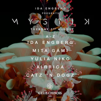 Ida Engberg, el talento sueco de la música techno, tansmite su pasión a través de sonidos modernos y avant-garde todos los martes con Mystic MYSTIK. Pionera en cada paso que da, Ida Engberg es la primera DJ femenina que lidera una residencia durante toda la temporada en Ibiza. Su viaje musical ofrece techno sexy y melódico de la mano de la anfitriona así como de artistas invitados como Chris Liebing, Kolsch, Richy Ahmed, Sasha, Sven Väth o Dubfire.