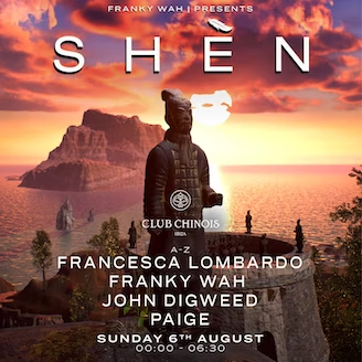 Franky Wah toma el control de los domingos en Club Chinois con SHÈN para deleitar a todos los asistentes con sus sets épicos llenos de pasión y actitud, una exhibición impresionante de visuales y una decoración cautivadora inspirada en la antigua China. El DJ nos cuenta que está “emocionado de ser el anfitrión de la residencia SHÈN este verano en Club Chinois y de llevar la marca a la isla. Esto siempre ha estado en mi lista de deseos y cuando comencé con SHÈN, una residencia en Ibiza parecía ser un sueño lejano. Sin duda, este es uno de los momentos destacados de mi carrera hasta la fecha”. Club Chinois y SHÈN marcan el futuro con una noche emocionante fusionando a un artista de vanguardia estrellas como Denis Hornet, Hot Since 82, Joris Voorn, y contemporáneo con Pete Tong, Themba, Miss Monique o Made by Pete.