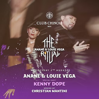 Anané y Louie Vega encabezan The Ritual, donde todos los miércoles la dinámica pareja comparte su visión a través de la energía del house vocal estilo old school. Su pasión por esta vertiente musical brinda noches de felicidad llenas de elementos inesperados. Visualmente impactante y con line ups de primera, The Ritual reúne a artistas y amigos con mucho soul y un gran sentimiento de libertad. Moodyman, Cassy, David Morales o Joseph Capriati son solo algunos de los nombres que les acompañan para “crear la experiencia de baile definitiva”.