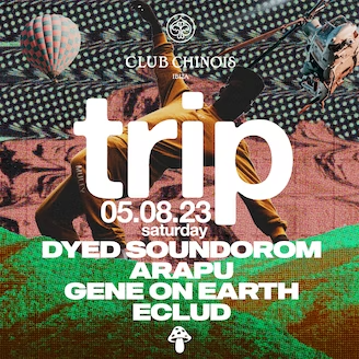 Trip se apodera de Club Chinois todos los sábados presentando una noche de sonidos techno épicos. Un evento imperdible “desde Ibiza, para Ibiza”, como lo describe el equipo, Trip llevará a los asistentes a un profundo viaje de sonido y visiones alucinantes con algunos de los mejores talentos de la escena underground y techno incluyendo a Seth Troxler, Carl Craig y Luciano. Johannes Goller, creador de Trip comenta que tras veinte años a cargo de Cocoon, “era hora de comenzar algo nuevo”, y que “Club Chinois ofrece uno de los mejores sistemas de sonido en Ibiza y las posibilidades técnicas nos permiten ser muy creativos con los visuales”.