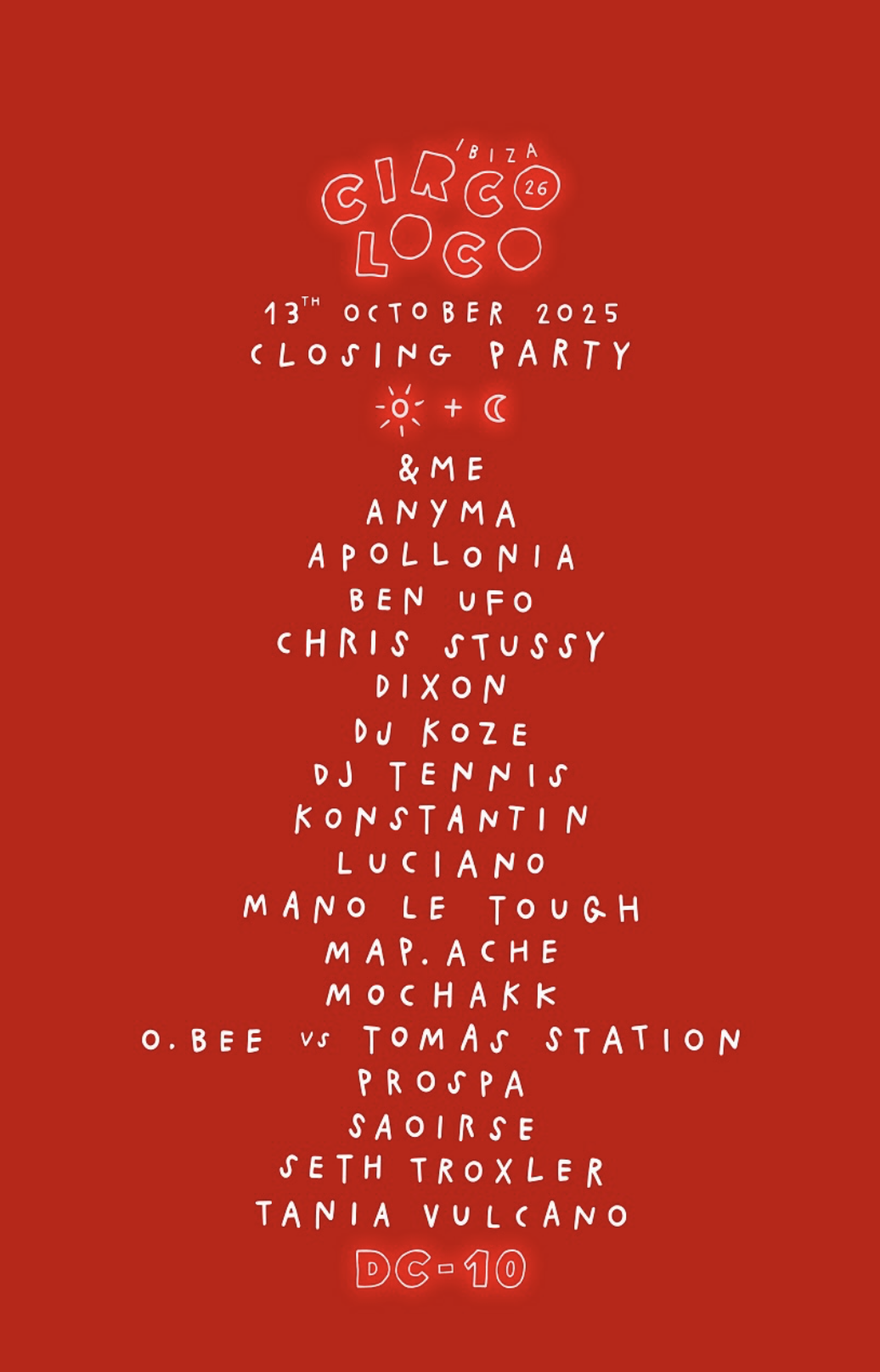 ASÍ ES LINE UP PARA EL CLOSING DE CIRCOLOCO 2025 EN DC10 IBIZA.