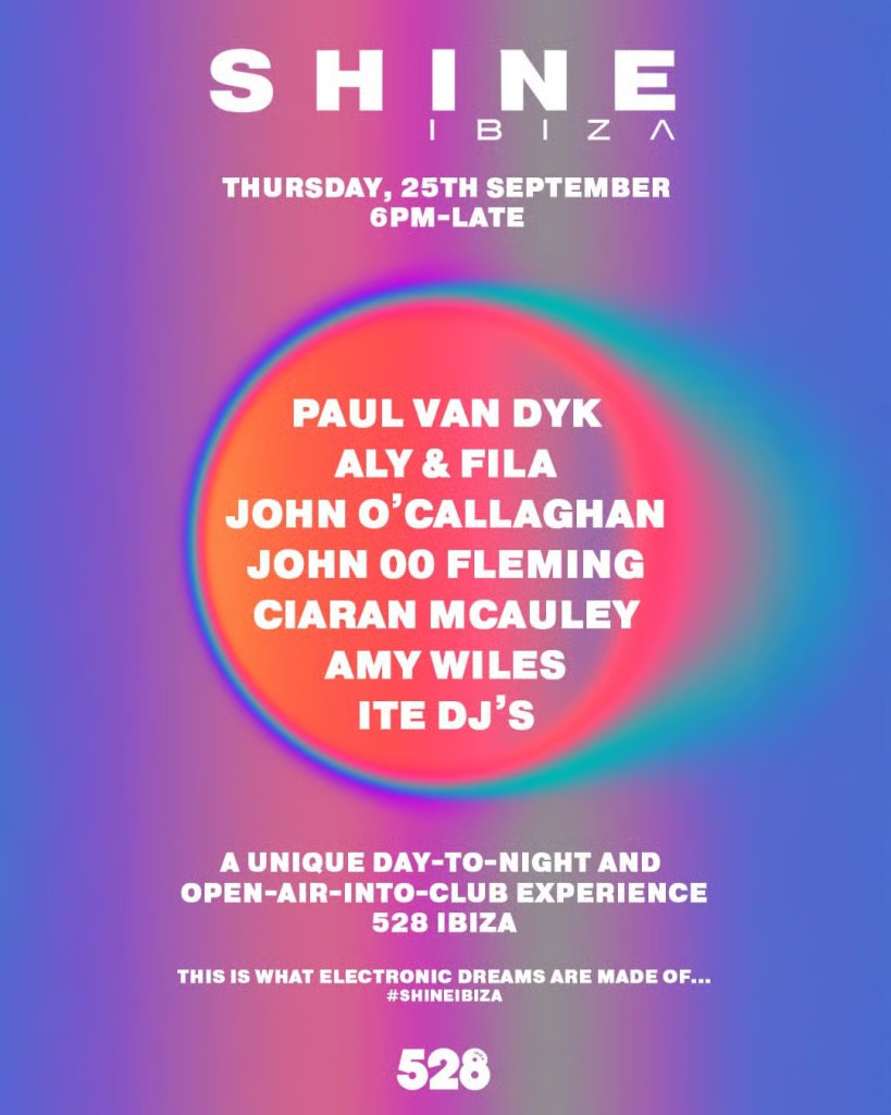 El sonido trance también tendrá su lugar en septiembre en 528 con la llegada de Shine Ibiza, una de las marcas más queridas por los amantes de los beats melódicos y atmosféricos. Con su inconfundible propuesta liderada por Paul van Dyk y acompañada de artistas de primer nivel, Shine ofrece una experiencia inmersiva donde la energía positiva y los himnos electrónicos se funden con la magia del atardecer en la isla.