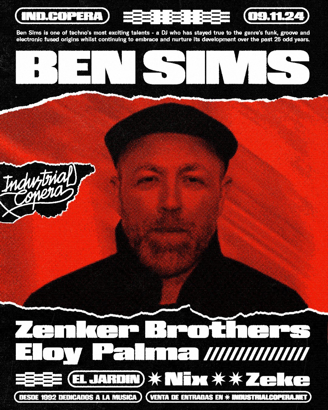 El corazón musical de Granada late al ritmo de Industrial Copera, un latido constante basado en los sonidos más estimulantes y en la atmósfera más mágica que solo la ciudad del embrujo puede ofrecer. Durante el mes de noviembre, Industrial Copera no quita el pie del acelerador y seguirá ofreciendo una programación que te dejará con la boca abierta, con artistas legendarios y con conceptos diseñados para los gourmets musicales más exquisitos. El primero en unirse a esta programación será Ben Sims el próximo sábado 9 de noviembre, acompañado por Zenker Brothers (primera vez en Industrial Copera) y Eloy Palma. Además en El Jardín podrás disfrutar de las sesiones de Nix y Zeke.