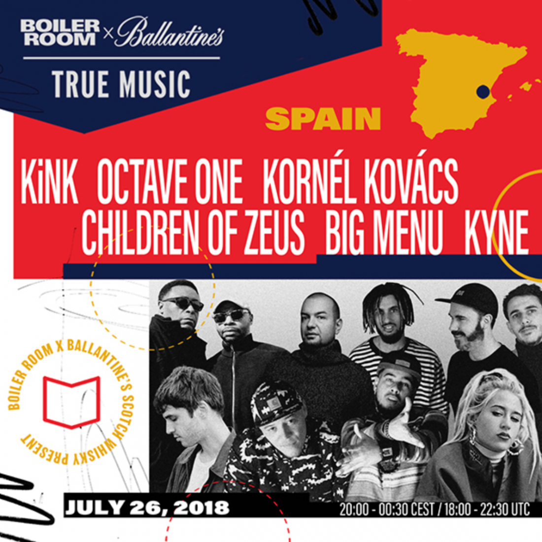 Destacan como headliners el innovador productor de techno KiNK, el sonido hip hop del trío BIG MENU o el sonido RnB de la cantante catalana Kyne. Todos estos artistas han colaborado en la creación de una canción exclusiva que será grabada en el Episodio True Music: Hybrid Sounds. Junto a ellos, Boiler Room X Ballantines también presentará el neo-soul del dúo británico Children of Zeus, el dj sueco-húngaro Kornel Kovacs y una de las leyendas del techno de Detroit, Octave One.