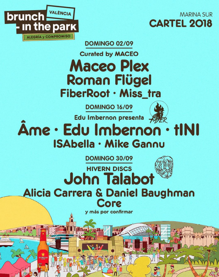 Cada domingo Brunch -In The Park llenará de música La Marina de Valencia, en Valencia, con sesiones de 13:00 a 22:00 horas de artistas como Âme, Maceo Plex o John Talabot, quienes se mantienen en la cima de la vanguardia electrónica. A ellos se suman en este anuncio del cartel más de 10 grandes artistas que se encargarán de convertir estos 3 domingos de verano en nuestros días favorito de septiembre.