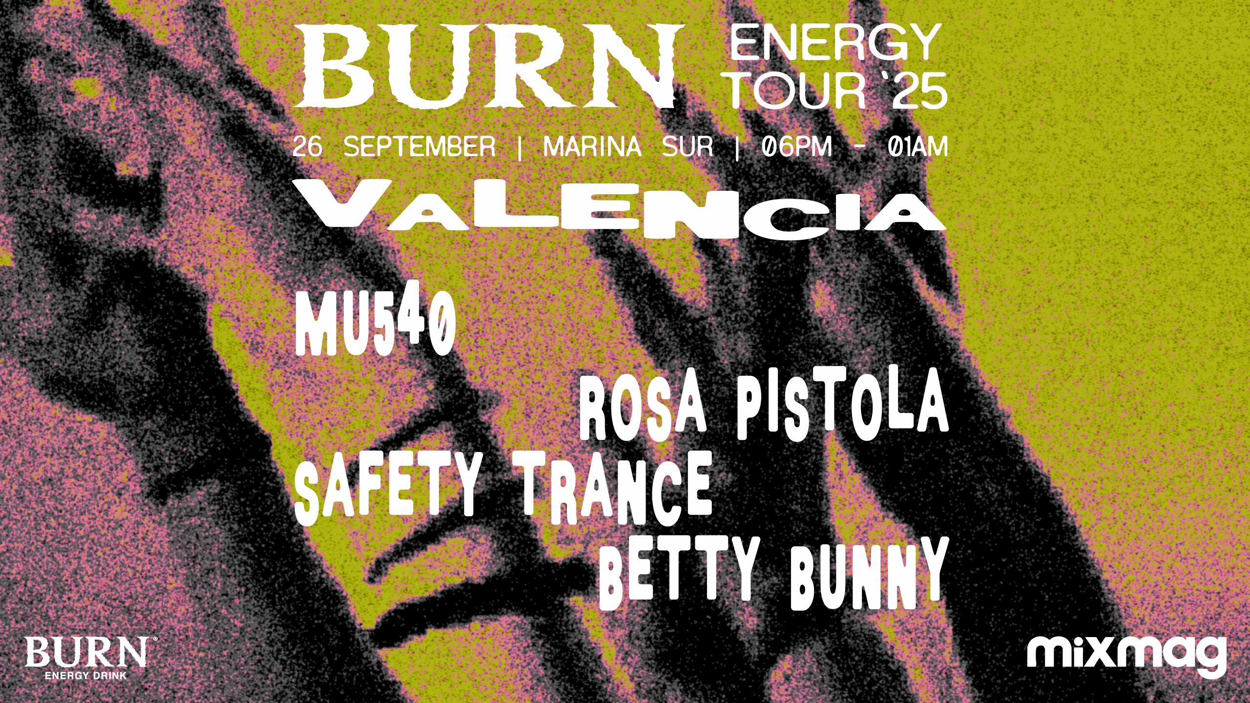 Burn Energy llega este septiembre a su primera parada del Burn Energy Tour ’25 en Valencia. El evento tendrá lugar el 26 de septiembre en Marina Sur y contará con MU540, Rosa Pistola, Safety Trance y Betty Bunny, prometiendo una noche de música imperdible que encenderá la escena festiva de la ciudad.