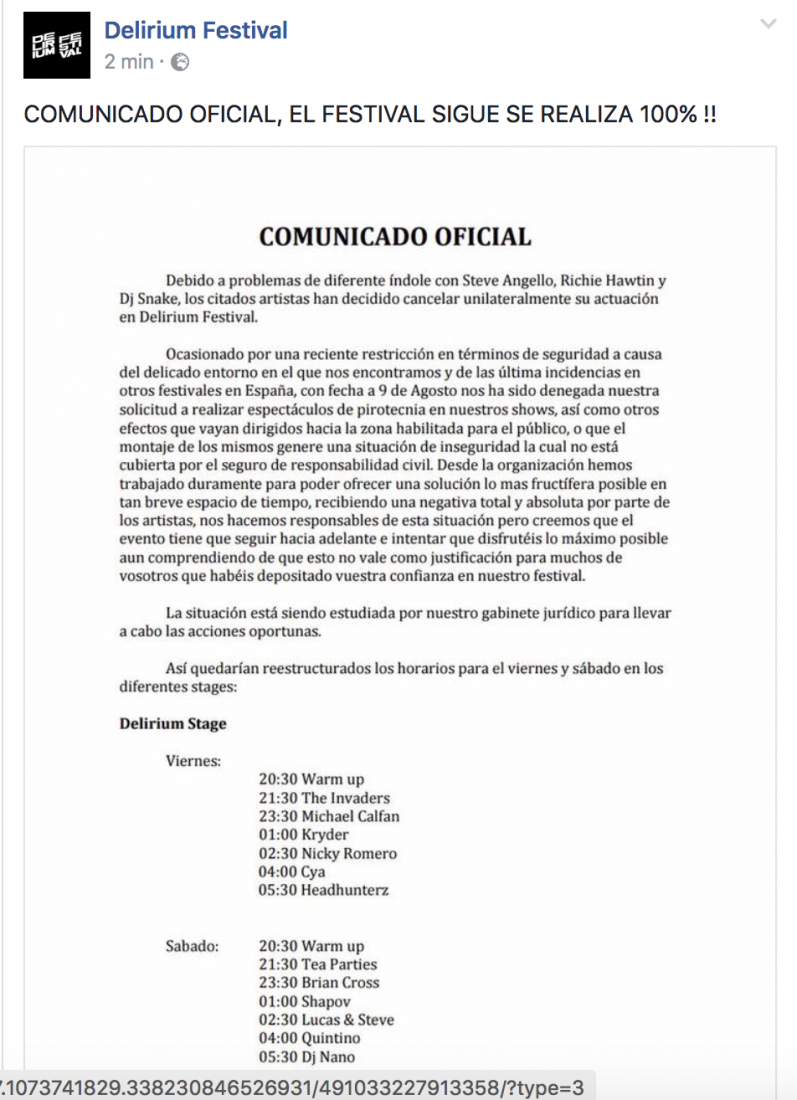 A su mala comunicación en redes, hoy se anunció, después de muchos rumores la cancelación de las actuaciones de Richie Hawtin, Dj Snake y Steve Angello. Los problemas no se acaban aquí, el festival también ha sufrido los azotes del temporal en las últimas horas.