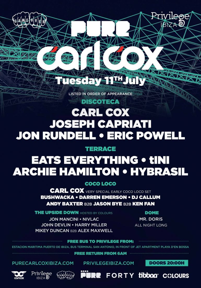 Bajo el nombre de “Pure Carl Cox” el equipo de Game Over, presentan su primera noche de la temporada en el mítico Privilege de San Rafael.