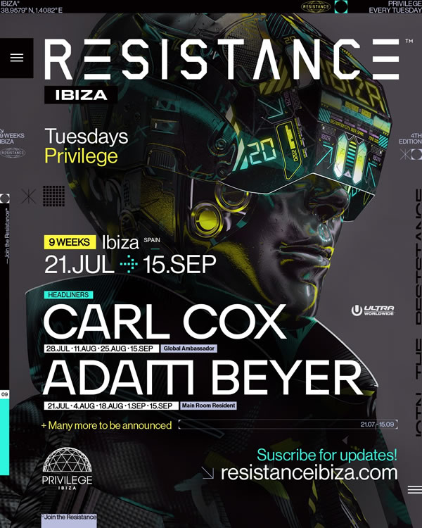 Gran noticia para la escena clubbing ibicenca, Pese a que algunos rumores invernales apuntaban la posibilidad de que Resistance abandonara Ibiza o su actual localización, hoy nos ha llegado la confirmación de que Resistance continúa en Ibiza y en su residencia semanal las noches de los martes en Privilege desde el 21 de julio y hasta el 15 de septiembre.