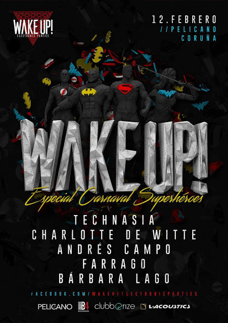 El próximo lunes 12 de febrero (víspera de festivo en la ciudad) tendrá lugar un nuevo evento Wake Up! Electronic Parties en la discoteca El Pelícano (A Coruña). Como viene siendo costumbre en estas festividades, la fiesta tendrá una temática especial debido a los carnavales. Si el año pasado la temática era el carnaval de Brasil, este año la temática estará dedicada a los superhéroes.