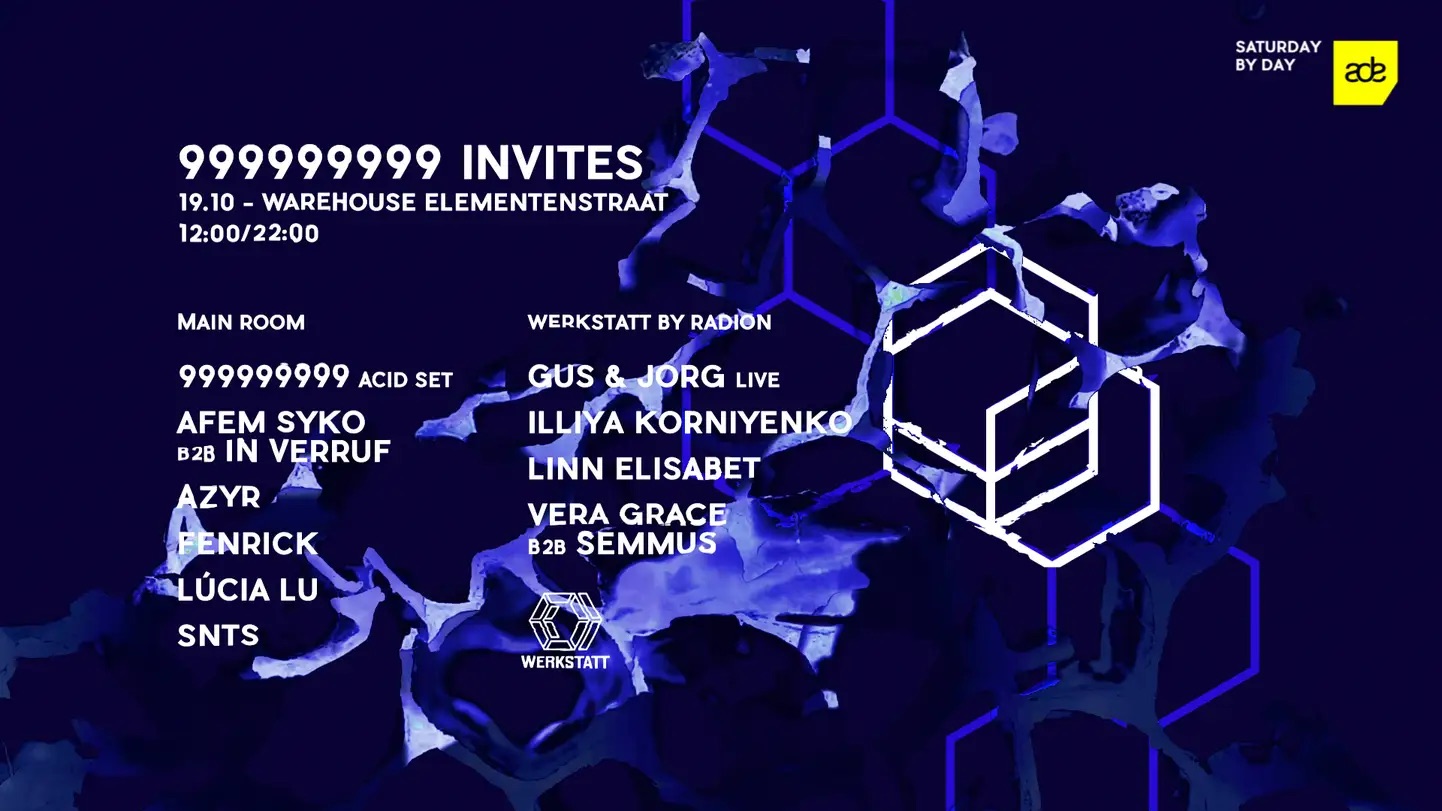 El dúo italiano 999999999 regresa a Warehouse Elementenstraat durante ADE 2024, presentando su característico set de acid techno en un evento diurno imperdible. Junto a ellos, estarán algunos de los nombres más destacados del techno más duro, como SNTS, Afem Syko B2B In Verruf, Fenrick, Lúcia Lu y más. Además, la sala Werkstatt contará con actuaciones como Gus & Jorg, Illiya Korniyenko y otros artistas. Será una explosión de sonidos industriales y techno puro.