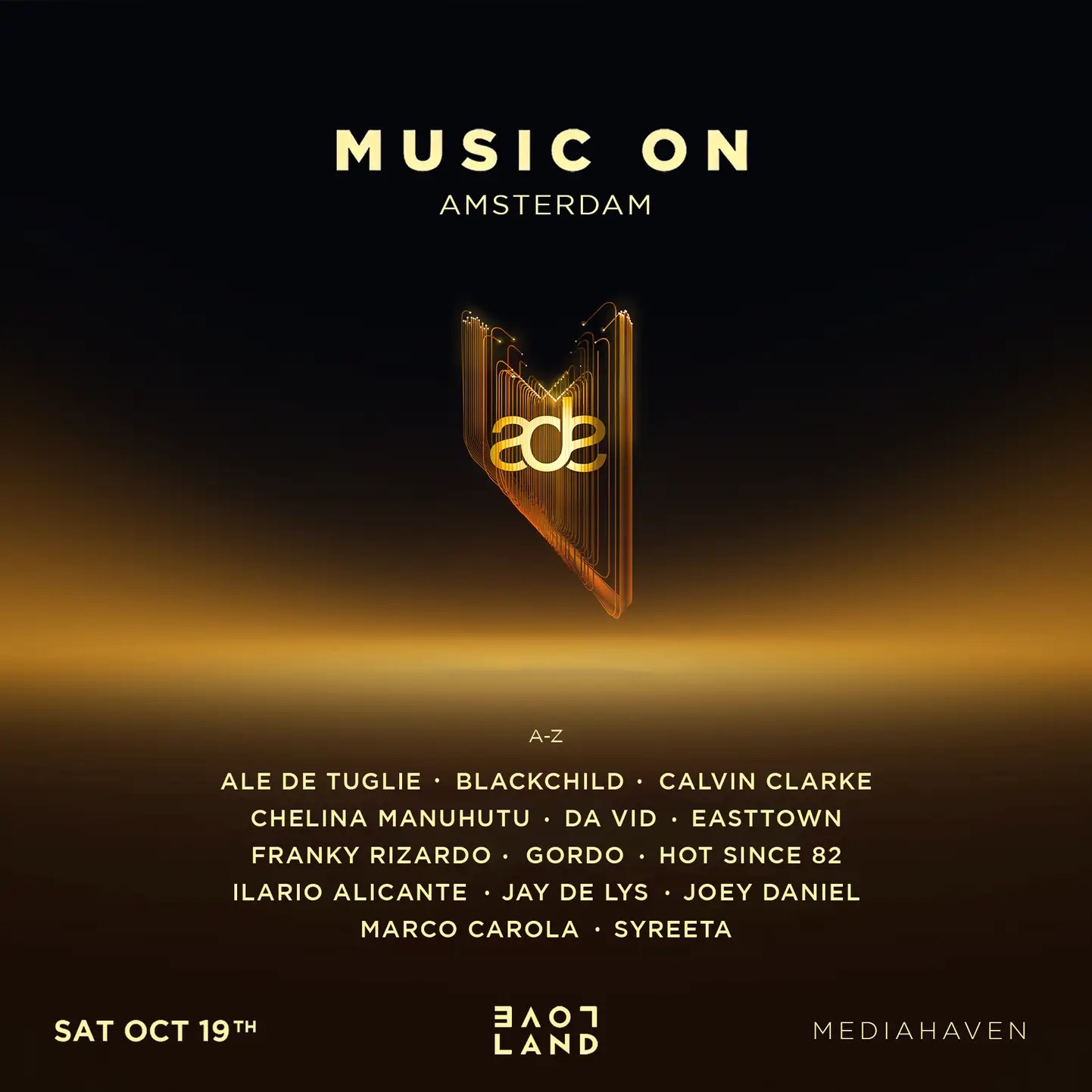 Después de su exitoso debut en ADE el año pasado, Marco Carola y su equipo de Music On regresan en octubre de 2024 para encender nuevamente la pista de baile en Mediahaven. El evento contará con un increíble lineup, que incluye a artistas como Ale De Tuglie, Chelina Manuhutu, Franky Rizardo, Gordo, Hot Since 82, Ilario Alicante, y muchos más. Esta noche promete ser una de las más esperadas durante el Amsterdam Dance Event.