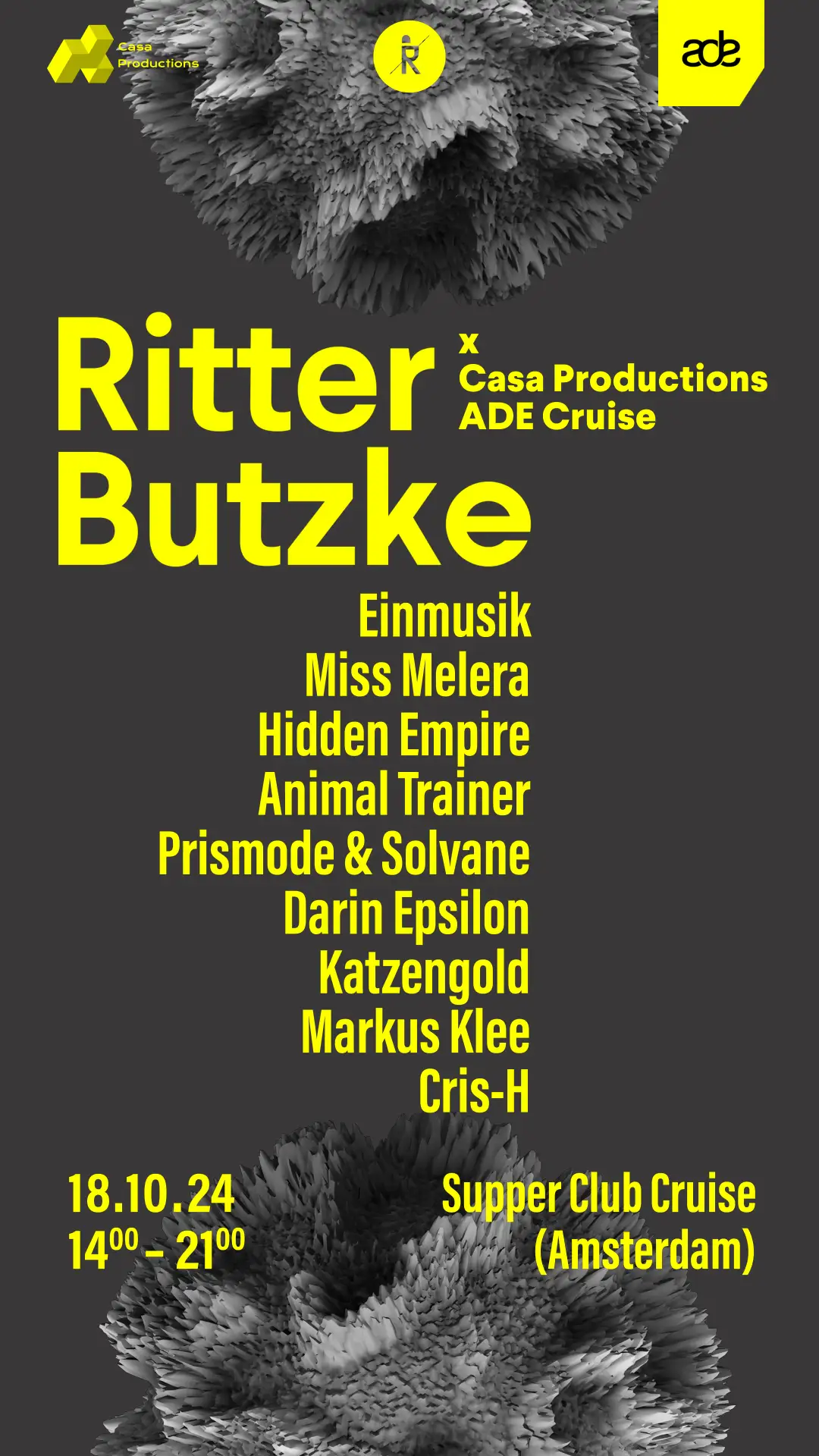 Tras el éxito de sus eventos en el Día del Rey y el crucero de ADE del año pasado, Ritter Butzke & Casa Productions se unen nuevamente para el Amsterdam Dance Event 2024 con una experiencia en barco incomparable. El evento contará con un cartel destacado que incluye a artistas como Einmusik, Hidden Empire, Miss Melera, Prismode, y más. Se ha seleccionado el mejor barco de Ámsterdam, con dos plantas de música excepcional, prometiendo una experiencia de primera calidad desde el comienzo hasta el final.