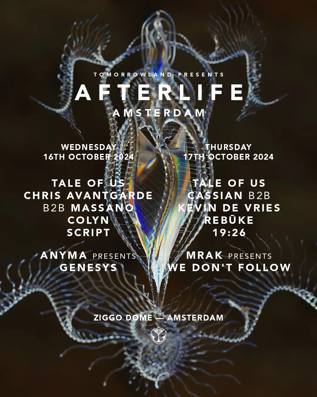 Afterlife regresa a Ámsterdam durante el Amsterdam Dance Event 2024 con dos emocionantes noches en el Ziggo Dome, el miércoles 16 y jueves 17 de octubre. Este evento promete ser uno de los momentos más destacados de ADE, con actuaciones de Tale Of Us como cierre. El miércoles contará con Anyma presentando ‘Genesys’, mientras que el jueves MRAK presentará ‘We Don’t Follow’. Tras su éxito en Tomorrowland, Afterlife ofrecerá una experiencia audiovisual inmersiva con producción de vanguardia.