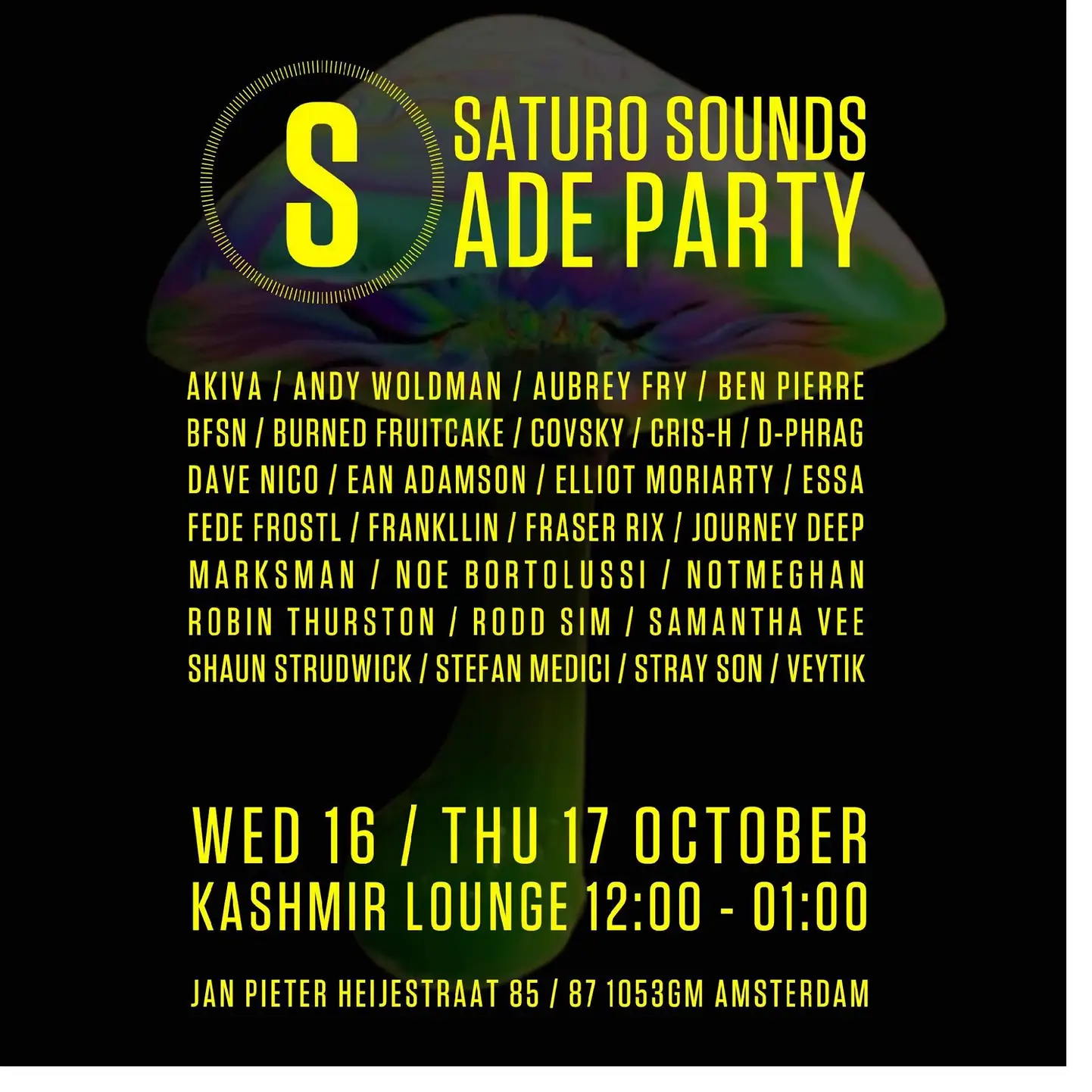 Saturo Sounds regresa a Ámsterdam durante la semana del Amsterdam Dance Event (ADE) con un emocionante lineup. Los eventos tendrán lugar el miércoles 16 de octubre y el jueves 17 de octubre, desde la apertura hasta el cierre, en el legendario Kashmir Lounge DJ Café. Será una experiencia llena de música envolvente que promete destacar en la vibrante atmósfera de ADE 2024.