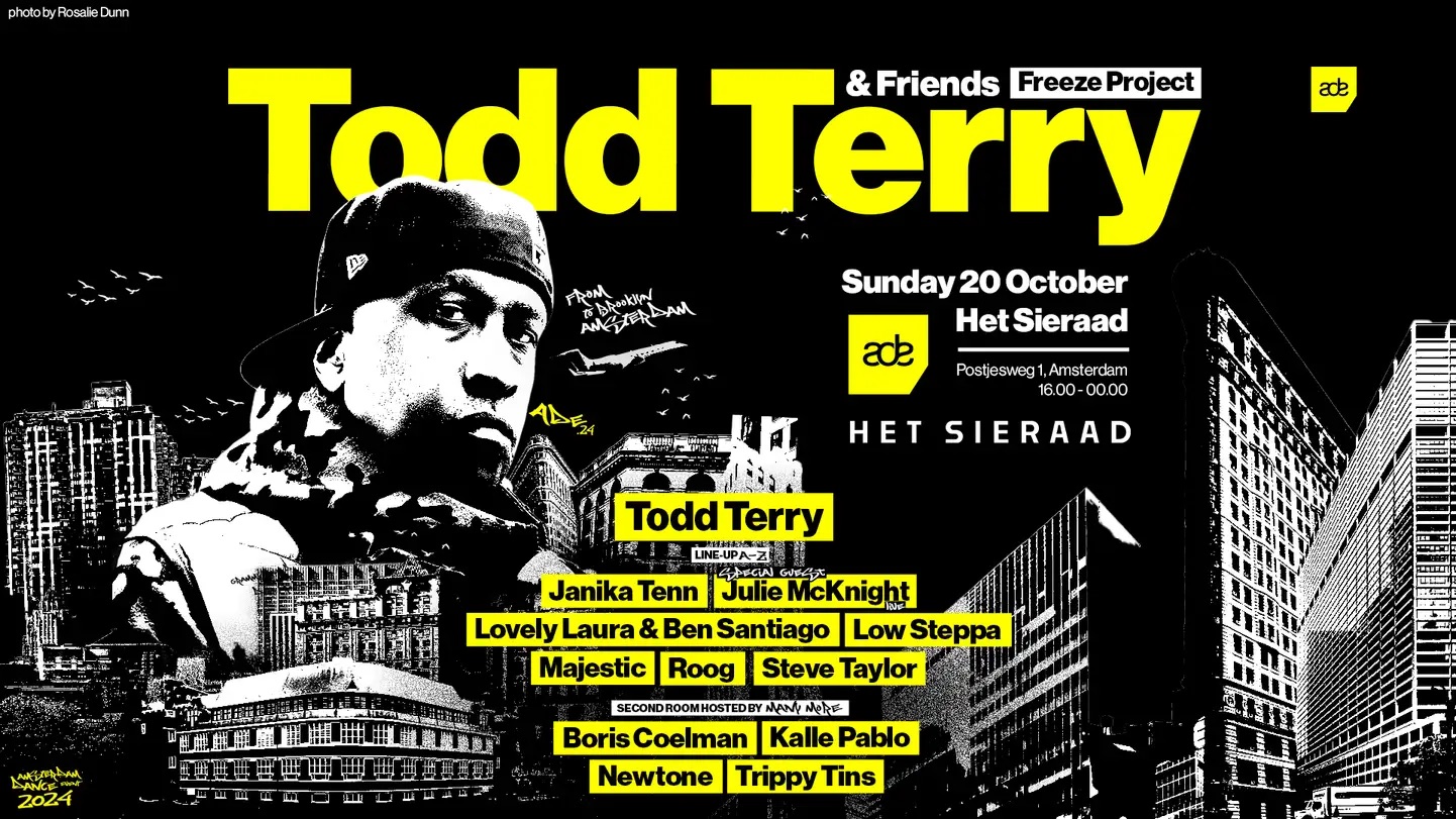 ¡La leyenda del house, Todd Terry, regresa a Ámsterdam durante ADE 2024 con su icónica fiesta Todd Terry & Friends, celebrando su 11ª edición! Este año, el evento presentará su legendario sello de vinilos de los 90, Freeze Records, y se llevará a cabo el domingo 20 de octubre en Het Sieraad. Junto a Todd, estarán grandes amigos y talentos del house, ofreciendo lo mejor de la música directa del alma.