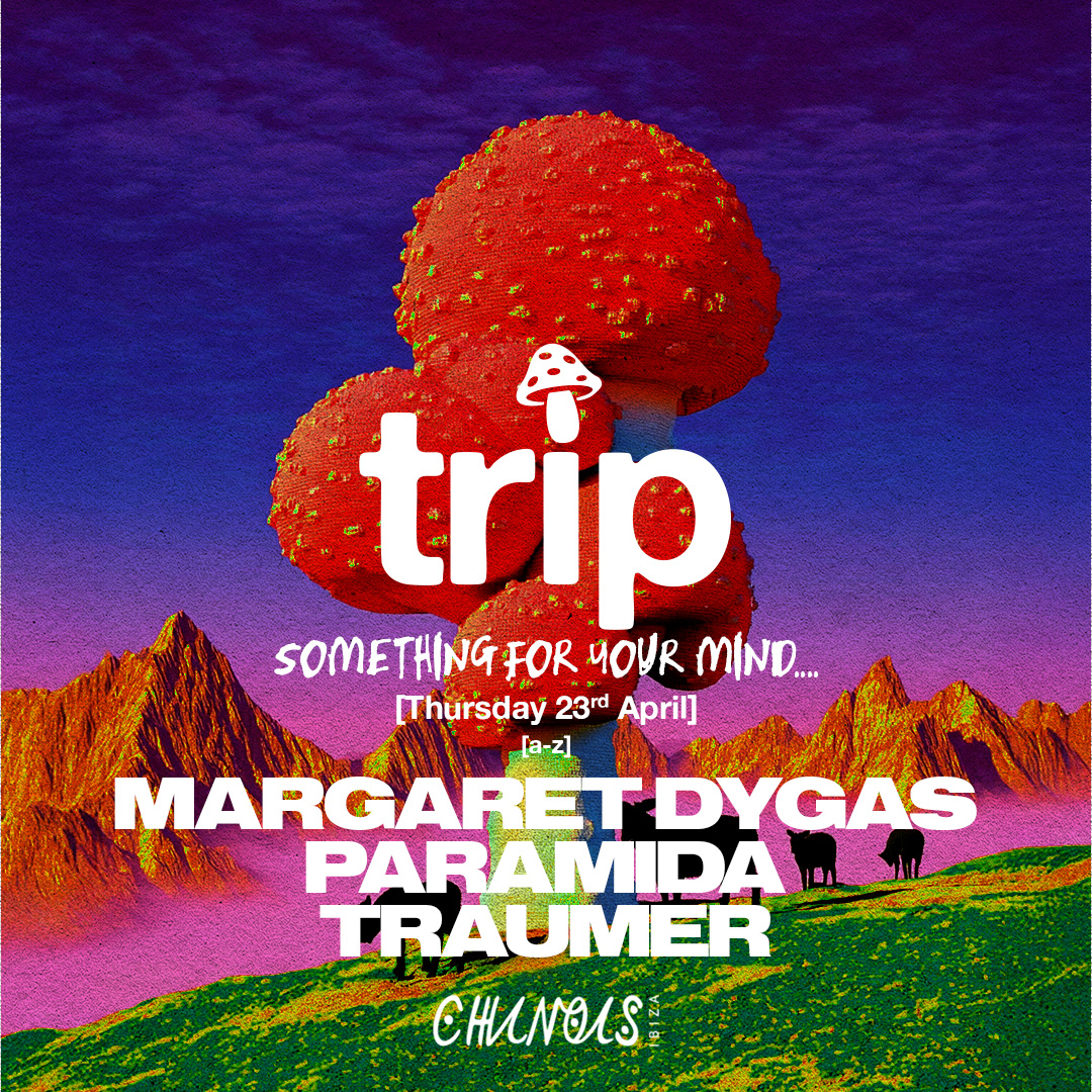 TRIP, la aclamada fiesta underground ideada por Johannes Goller, celebra su tercera cita de pretemporada con el regreso de algunos de sus artistas favoritos. Traumer, fundador de Get-traum y nombre indiscutiblemente ligado a la identidad de TRIP, compartirá cabina con Paramida, residente de Panorama Bar y directora del sello Love On The Rocks. Completa el cartel Margaret Dygas, cuya propuesta musical bebe de sus raíces polacas y su paso por las escenas de Nueva York, Londres y Berlín.