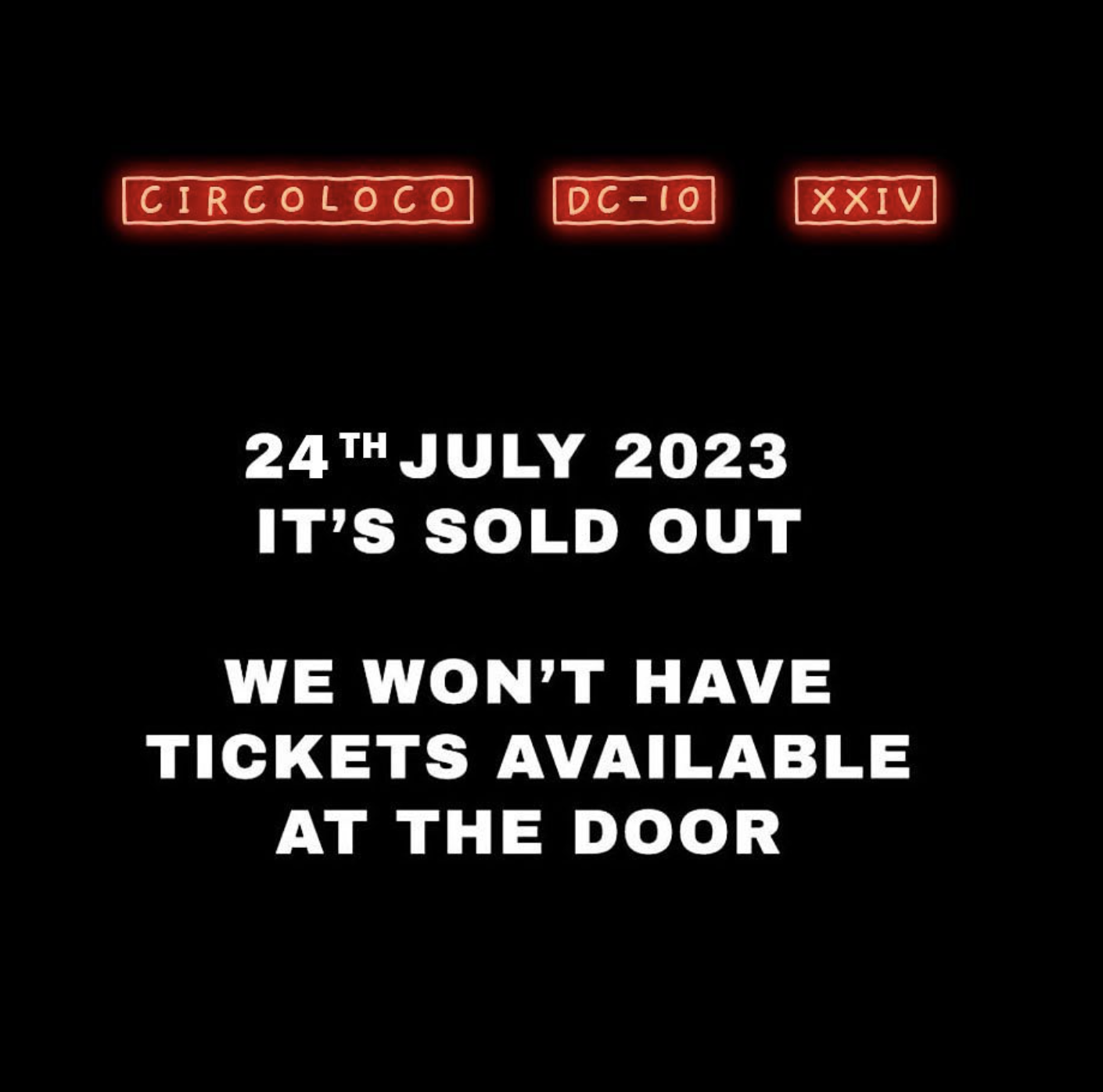 Circoloco acaba de anunciar que su evento de mañana lunes 24 de julio esta “sold out”.