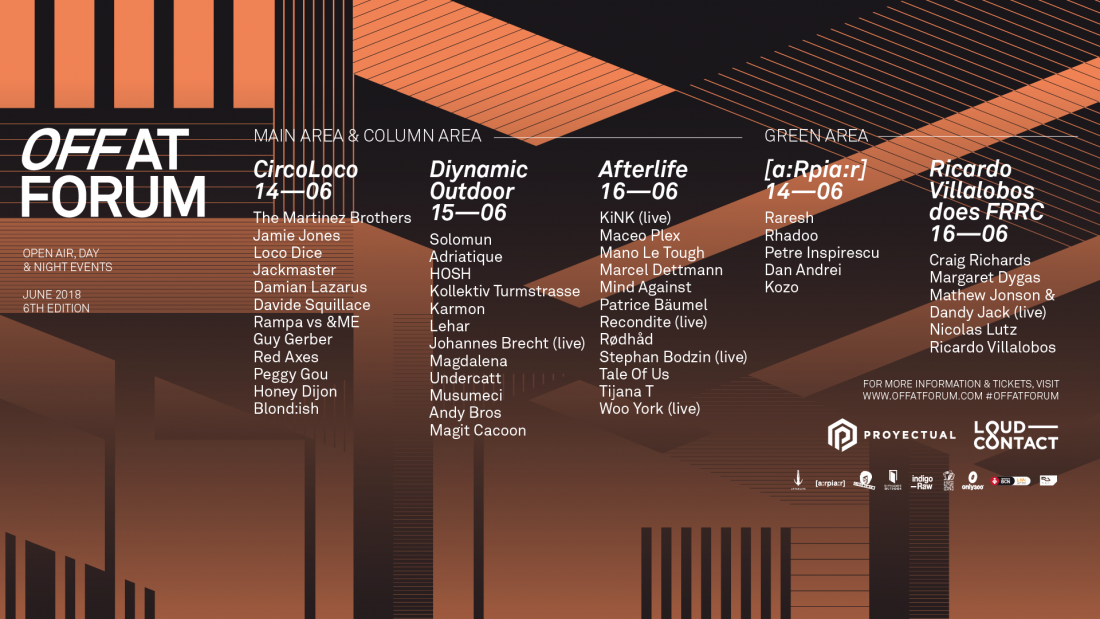 Proyectual y Loud-Contact unen fuerzas para celebrar la edición más desenfadada de Off at Forum: tres jornadas de música electrónica lideradas por Circoloco, [A:rpia:r], Diynamic Outdoor, Afterlife y FRRC by Ricardo Villalobos.