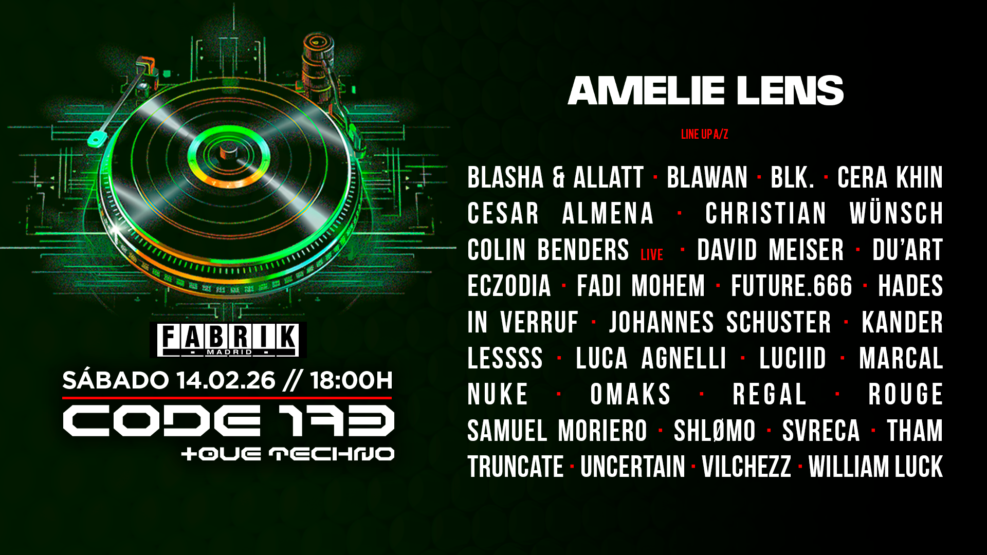 CODE APUESTA POR EL TECHNO Y MUCHO MÁS PARA SAN VALENTÍN EN FABRIK CON AMELIE LENS, COLIN BENDERS, SHLØMO, REGAL, BLAWAN Y LUCIID ENTRE OTROS MUCHOS…