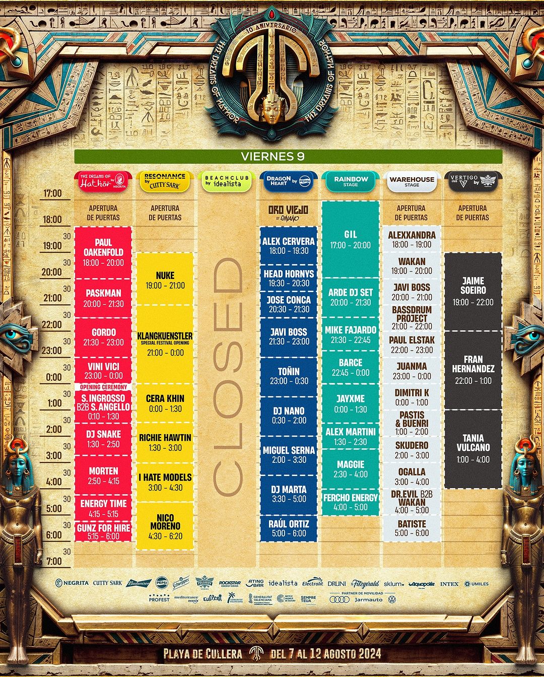 Oro Viejo es la fiesta por excelencia de DJ Nano, un recorrido nostálgico por los clásicos de la música dance de de los 90 y 2000. Con un poderoso espectáculo de luces, visuales y efectos especiales, Oro Viejo es una gira con una decena de fechas anuales en toda España, tanto en festivales al aire libre como en espacios indoor. En su parada en el 10º aniversario de Medusa, miles de cuarentones con el espíritu joven disfrutarán de una sesión única llena de energía y recuerdos. Además del anfitrión, el cartel de este takeover en Cullera presenta a Álex Cervera, Head Hornys, Jose Conca, Javi Boss, Toñín, Miguel Serna, DJ Marta y Raúl Ortiz.