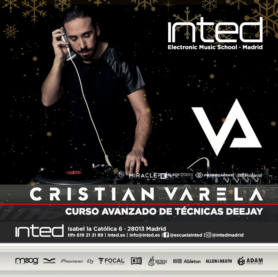 Inted y Cristian Varela unen fuerzas para traer a Madrid el tan aclamado «Curso avanzado de técnicas» del dj, del 26 al 30 de diciembre en Inted y con solo 10 plazas disponibles. Inted no necesita carta de presentación ya que durante sus casi 20 años de existencia, su trayectoria viene marcada por una formación de calidad con unos planes de estudios altamente cualificados impartidos por profesionales del sector que los definen como la Escuela Referente de Informática Musical y Deejay profesional de España.