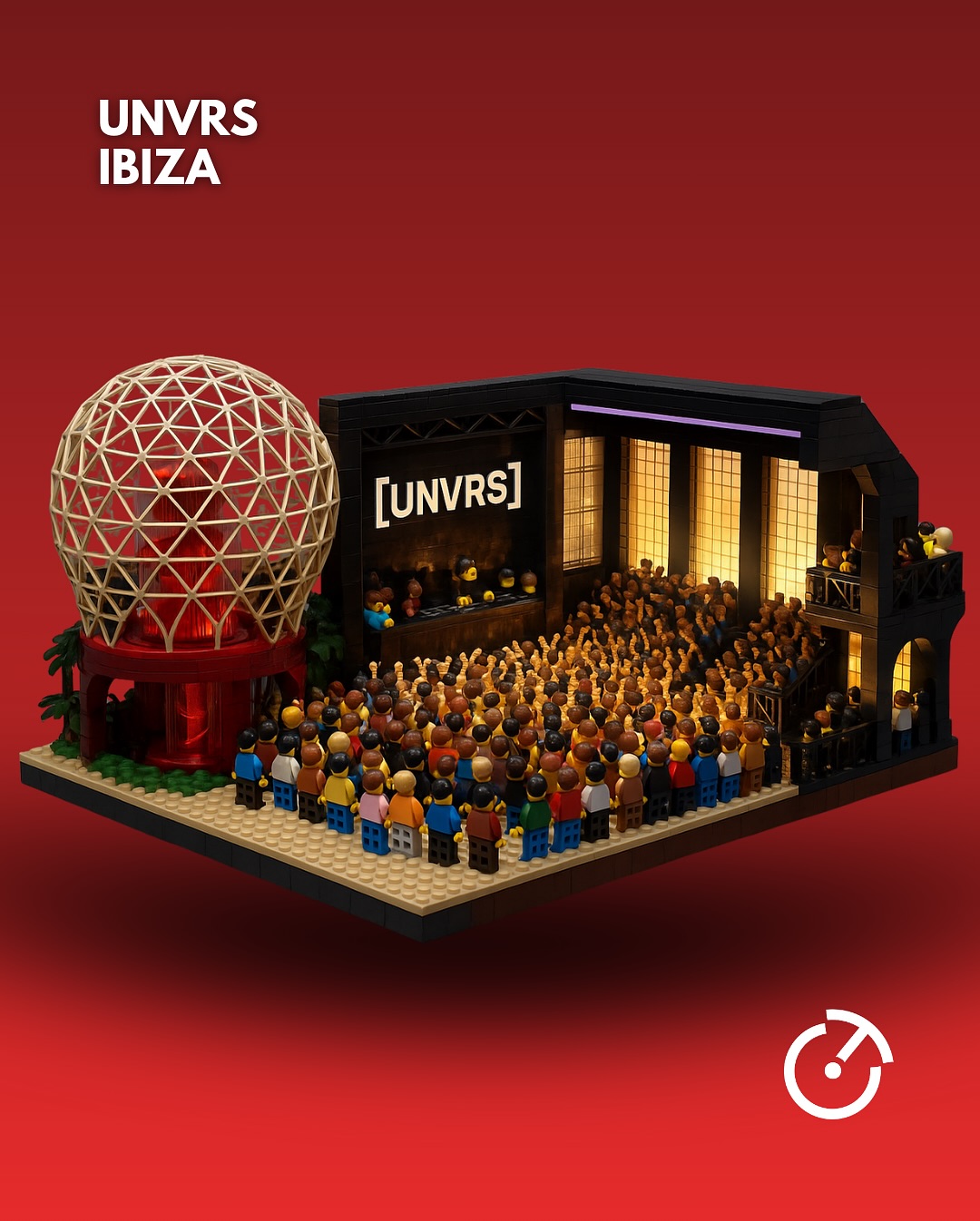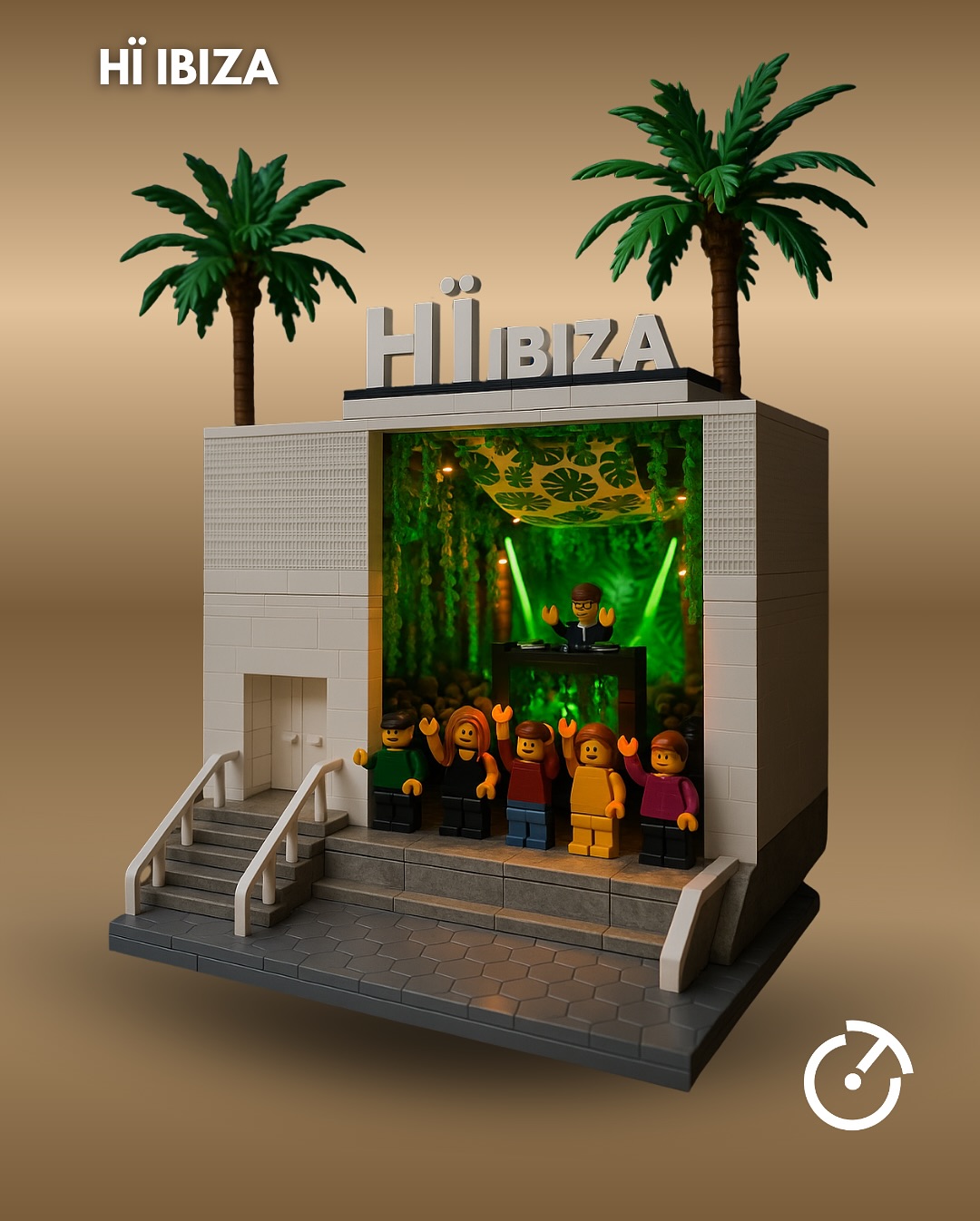 Entre las recreaciones destacan tres clubs de la vida nocturna en Ibiza: DC10, el popular HÏ Ibiza y el nuevo club [UNVRS], Estas miniaturas capturan con detalle la esencia arquitectónica y el ambiente vibrante de cada espacio, fusionando la pasión por la música electrónica con el arte del modelado en LEGO.