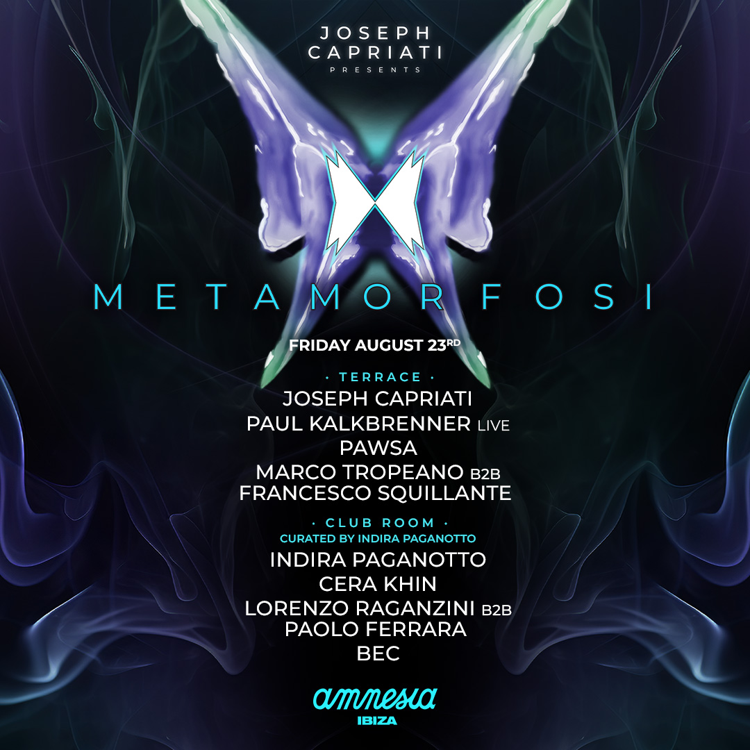 Nada ni nadie puede detener el éxito de Metamorfosi. El mejor sonido techno aterriza un viernes más en Amnesia para dejar claro que en cuanto a este estilo, ninguna fiesta de la isla está a su altura. La temporada de Metamorfosi está resultando mucho mejor de lo esperado. Cada viernes es una aventura musical de primer orden en la que algunos de los mejores DJs del planeta despliegan todo su talento regalándonos sesiones brillantes. En esta ocasión la leyenda Paul Kalkbrenner se une a la familia que ha diseñado Joseph Capriati para regalarnos una noche inolvidable el próximo 23 de agosto.