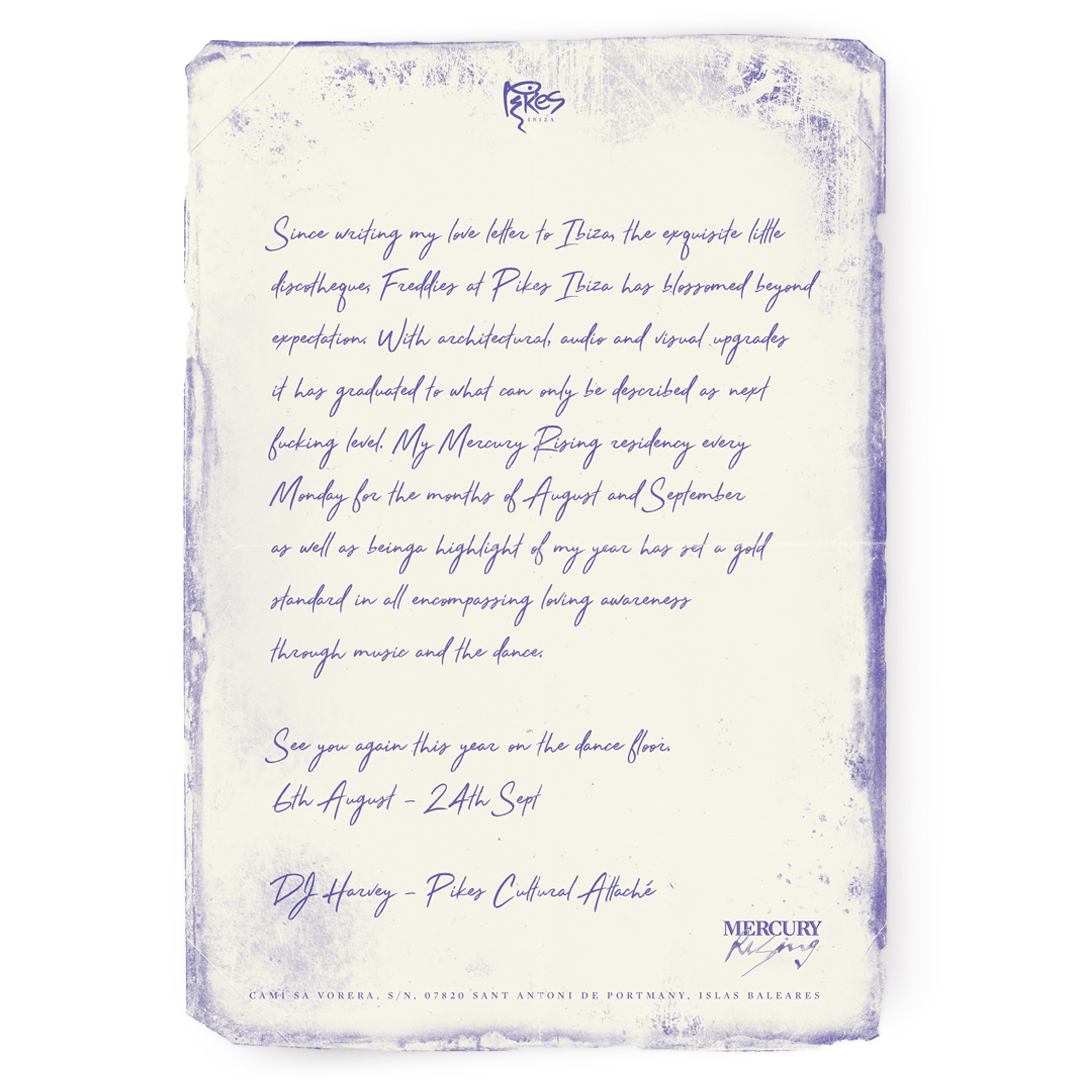 Desde el 6 de agosto, y hasta el 24 de septiembre, los fans del artista, tienen una cita en el mágico y especial hotel Pikes de San Antonio en Ibiza. Estas son las palabras que el artista ha querido dedicar antes de comenzar esta nueva temporada.