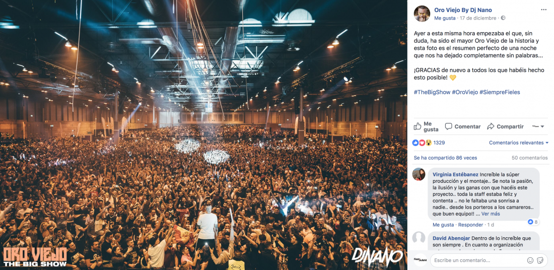 El espectáculo ORO VIEJO “The Big Show” que es como se denomino al evento, consiguió ser, uno de los eventos con más expectación del año en Madrid y después de hacer bailar durante 8 horas a todos los asistentes, Dj Nano daba las gracias de esta manera en su pagina de Facebook.