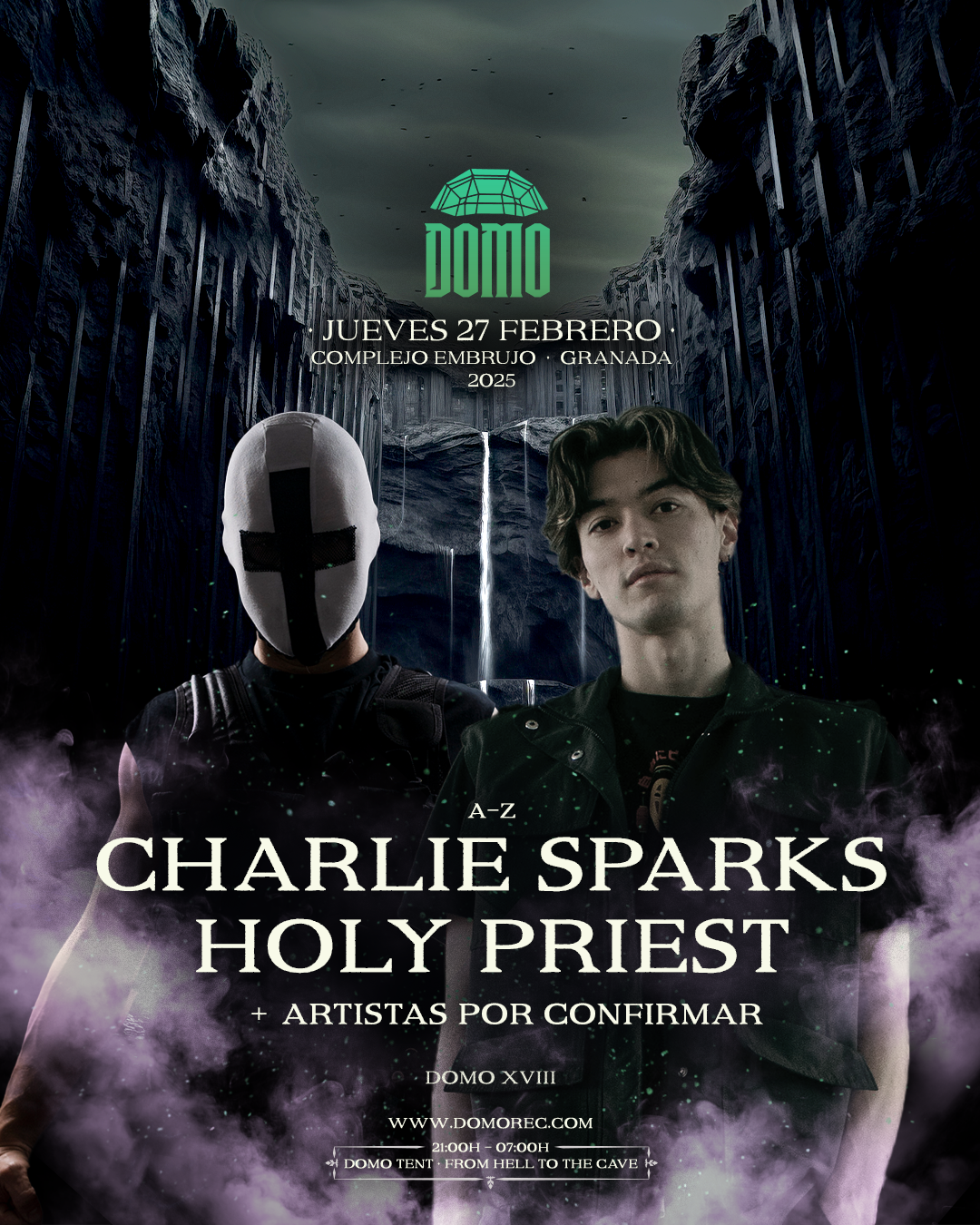 Por otro lado DOMO XVIII ya ha anunciado a Holy Priest y Charlie Sparks, quien volverá a celebrar su cumpleaños en Granada, para su segunda fecha en febrero.