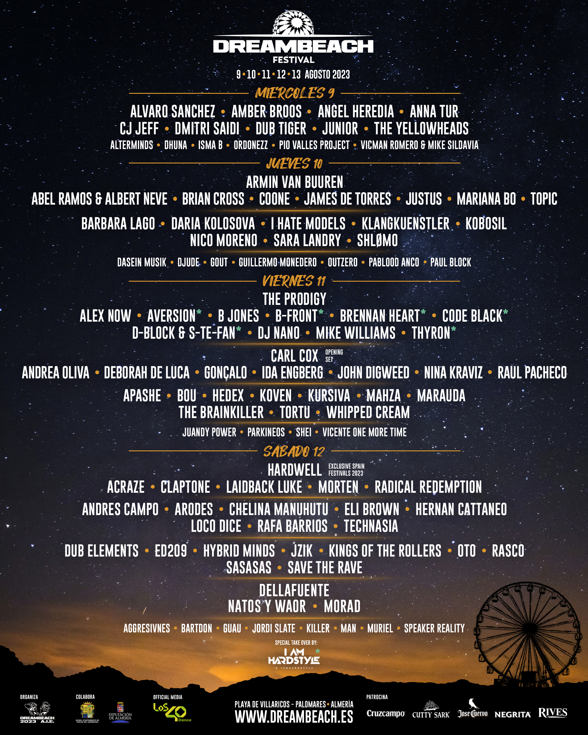 Dreambeach volverá a desplegar su propuesta de 5 días jornadas consecutivas, 3 días (jueves, viernes y sábado) en el recinto del festival con programación simultánea en tres grandes stages (EDM/ Mainstream/Hardstyle, Techno y Drum & Bass/Breaks). La zona de acampada, para más de 25.000 personas albergará con escenario en el camping.