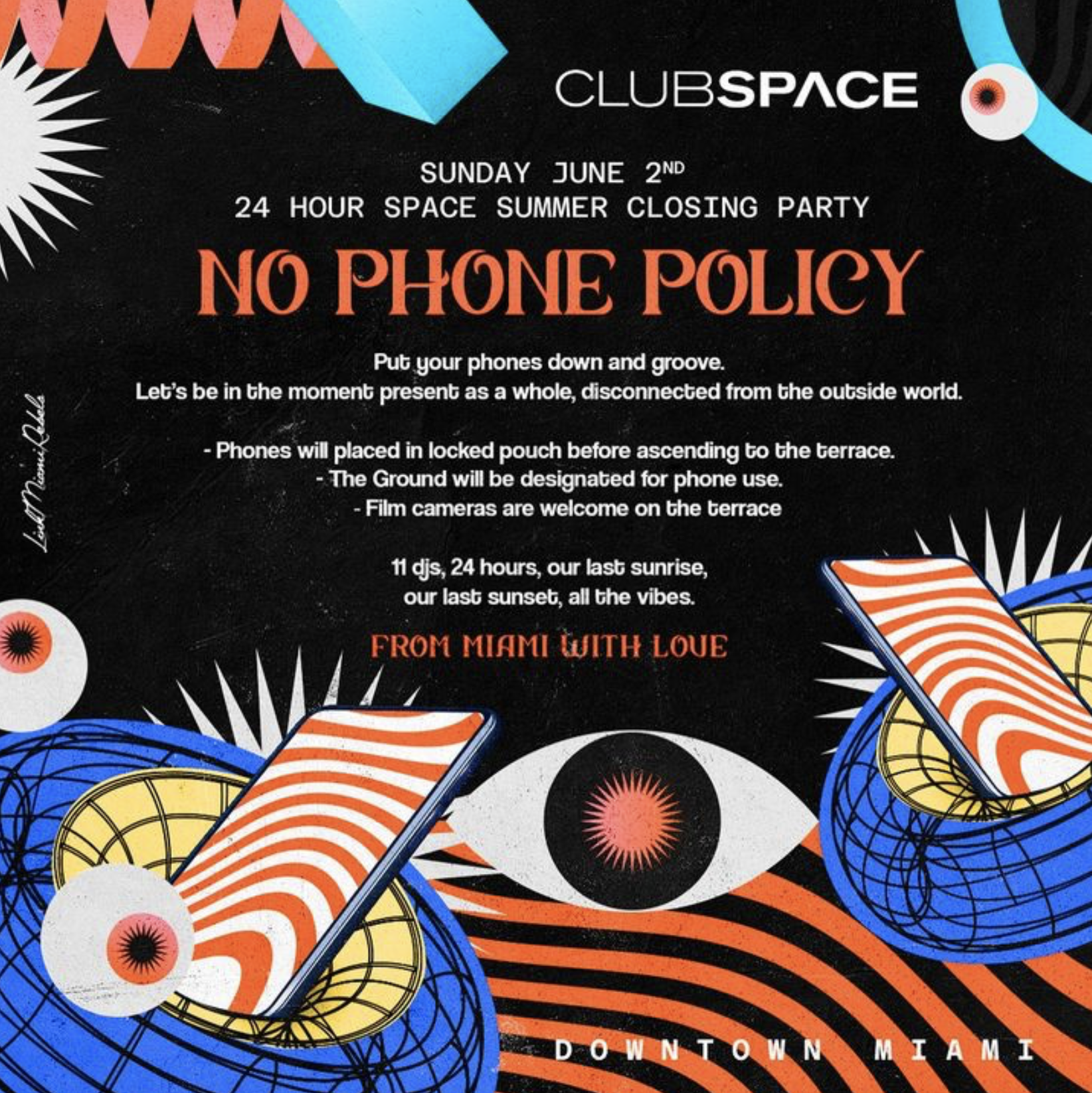 Space Miami celebrará este domingo 2 de junio su closing party 2024 y ha incorporado una nueva política de uso de móviles en el club.