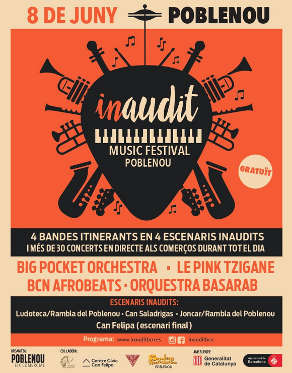 Inaudit In acogerá aquellos conciertos programados por los propios comerciantes del barrio, quienes además ofrecen otras muchas actividades fuera y dentro de sus locales desde la apertura de puertas a primera hora de la mañana. Este año, además, su propuesta incluye el Inaudit Kids, una serie de actividades para que los más pequeños de la casa también disfruten de la jornada festiva. Danza africana en El Pati dels Tresors, música en el restaurante Nabibi, improvisación musical en Vernita Studio y un espectáculo familiar a cargo del joven guitarrista Max Tamayo en La Petita, ponen el acento infantil a un festival para todos los públicos.