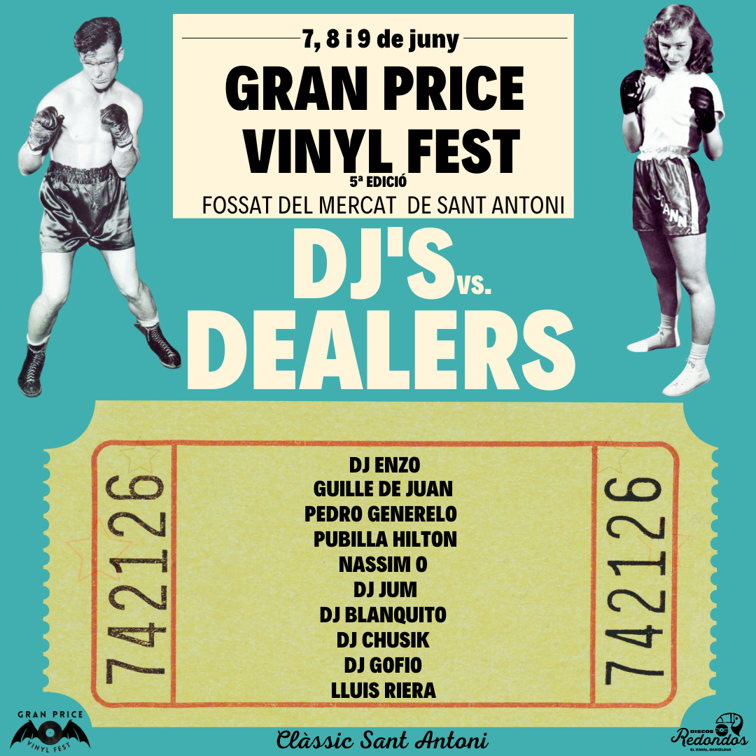 Entre estas actividades, destaca el esperado Dj’s vs Dealers, que por fin desvela el cartel de Djs locales. Para honrar la herencia del Price como sala de boxeo, los DJ’s se enfrentarán a un reto épico, en el que no habrá golpes, sino canciones: hacer una sesión sin su maleta de discos. Despojados de su «salvavidas», tendrán que preparar un set con los vinilos de un stand asignado al azar, sin tiempo para planear ni acomodarse a su estilo habitual. Entre los elegidos para esta célebre contienda, ilustres DJs de la escena local como Nassim O, habitual del circuito de clubes barcelonés e incansable coleccionista de soul, hip hop, jazz y funk; el histórico Pedro Generelo, productor de música electrónica de los 80 y 90 y Dj de hip hop y Guille de Juan, propietario del Curtis Audiophile Cafe. Completan el line up de lujo DJ Blanquito (Tropikal Rockers), DJ Chusik, DJ Gofio, DJ Jum, DJ Enzo, Pubilla Hilton y Lluis Riera.