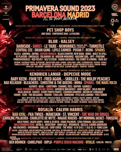 El Primavera Sound, que este año tiene la novedad de celebrarse en Barcelona (El Parc del Fòrum, del 1 al 3 de junio) y también en Madrid (Ciudad del Rock de Arganda del Rey, del 8 al 10 de junio), lanza el listado de nombres que estarán este año en su cartel 2023. Serán en total más de 200 actuaciones por cada sede incluyendo ambas jornadas de bienvenida y cierre y la programación de Primavera a la Ciutat, el festival urbano que entre semana llevará algunos de los sonidos actuales a diferentes espacios y salas de Barcelona y Madrid. Las dos ciudades compartirán el cartel.